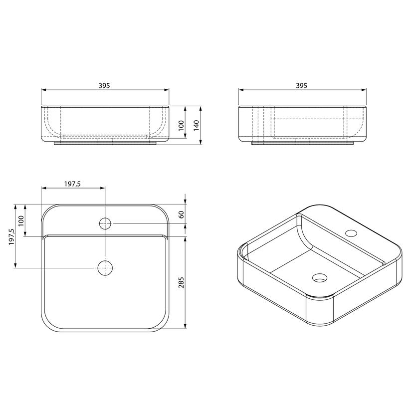 Parametry produktu  MOLVENO keramické umyvadlo na desku, 39,5x39,5cm, bílá