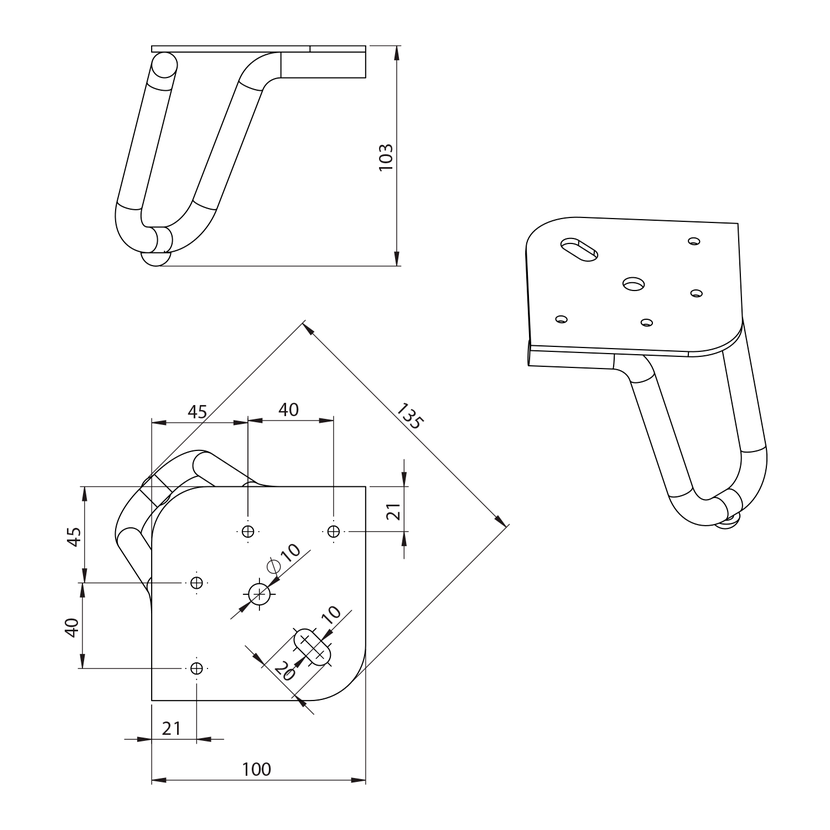 Parametry produktu  Nábytková nožička, výška 103mm, černá mat