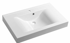 Nábytkové umyvadlo z litého mramoru Natural k instalaci na zeď nebo k zapuštění do závěsné skříňky, bez přepadu. Bílé provedení.