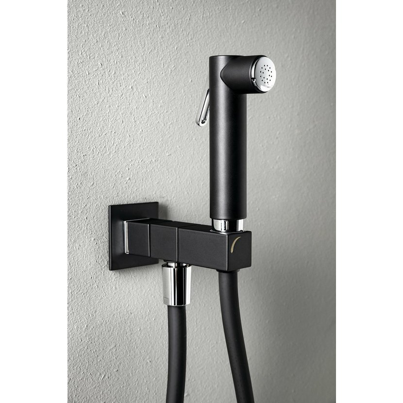 Nástěnný ventil s ruční bidetovou sprškou a bezpečnostní pojistkou,hranatý,černá mat