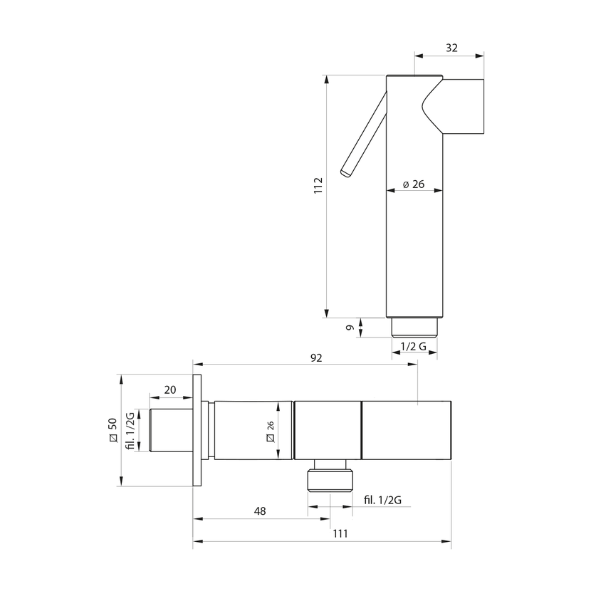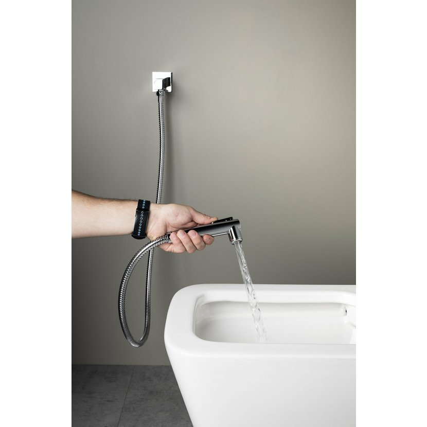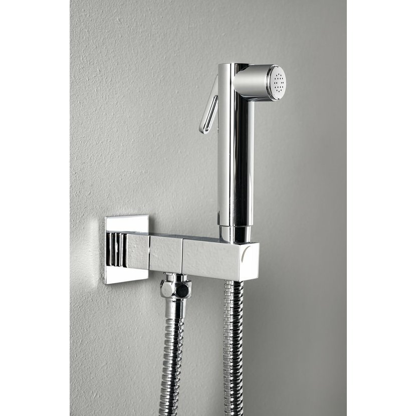 Nástěnný ventil s ruční bidetovou sprškou a bezpečnostní pojistkou,hranatý,chrom