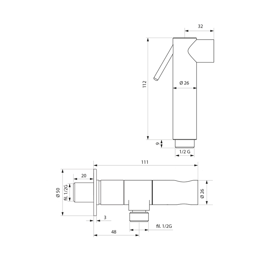 Parametry produktu  Nástěnný ventil s ruční bidetovou sprškou a bezpečnostní pojistkou,kulatý,chrom