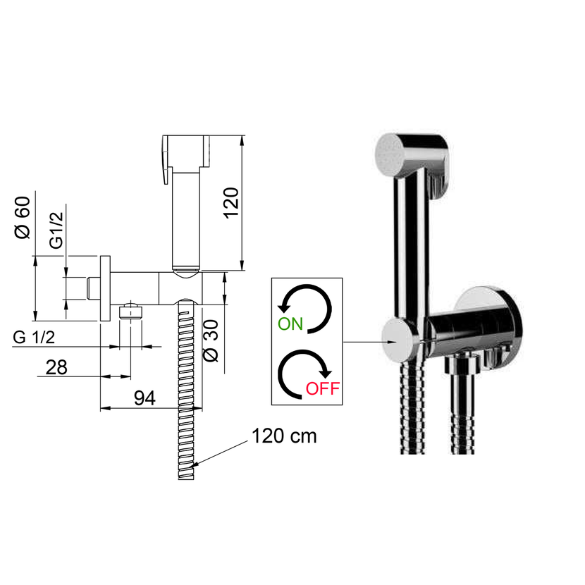 Parametry produktu  Nástěnný ventil s ruční bidetovou sprškou a bezpečnostní pojistkou,kulatý,chrom