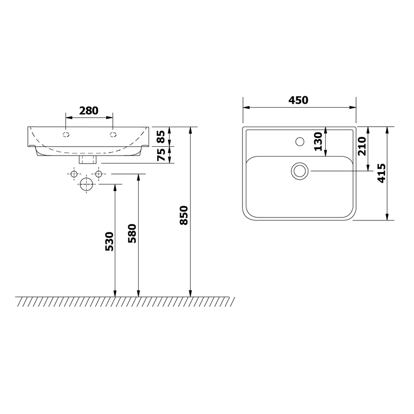 Parametry produktu  NEON keramické umyvadlo 45x41,5cm, bílá