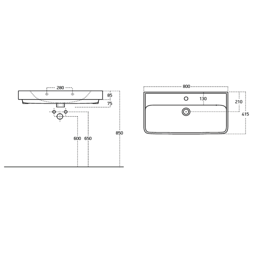 Parametry produktu  NEON keramické umyvadlo 80x41,5cm, bílá