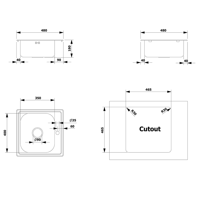 Parametry produktu  Nerezový vestavný dřez 48x18x48cm