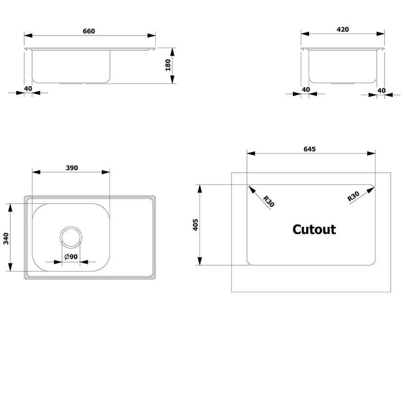 Parametry produktu  Nerezový vestavný dřez s odkapem 66x18x42cm