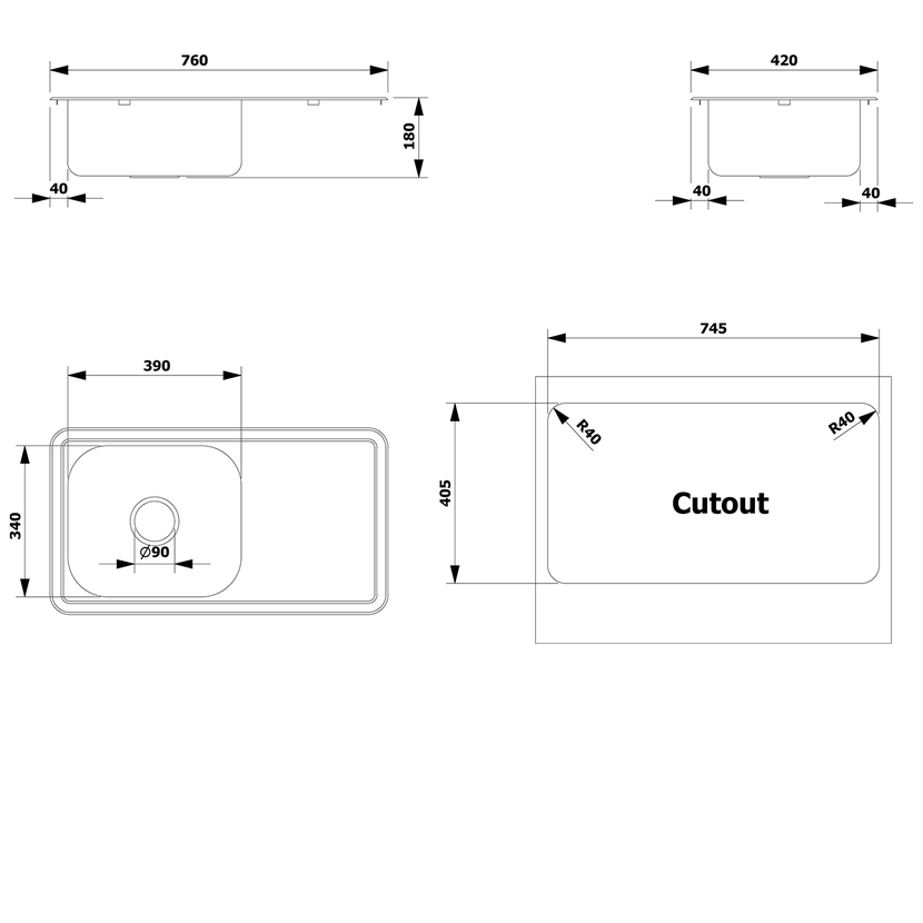 Parametry produktu  Nerezový vestavný dřez s odkapem 76x18x42cm