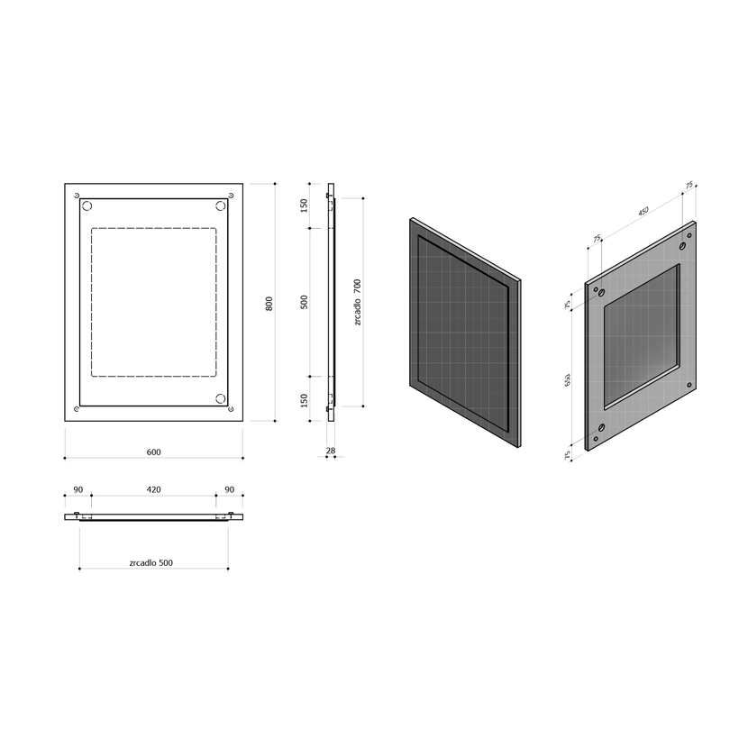 Parametry produktu  NIROX zrcadlo v rámu 60x80cm, bílá lesk