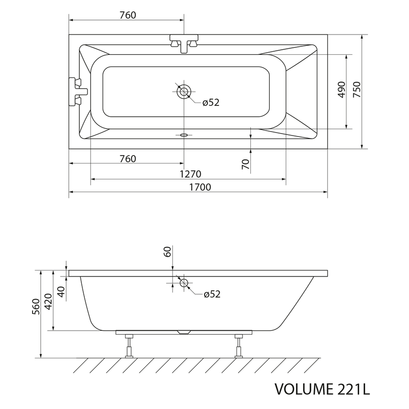 Parametry produktu NISA obdélníková vana 170x75x42cm, bílá