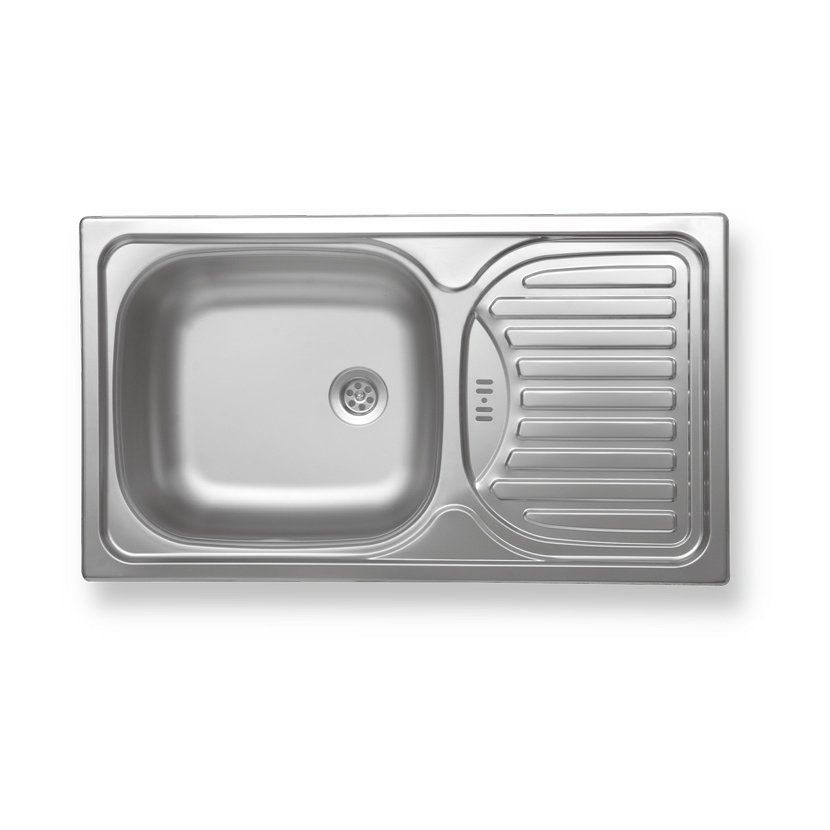 Dřez nerez s okapávací plochou 43,5x76x15 cm s přepadem z odkapávače.