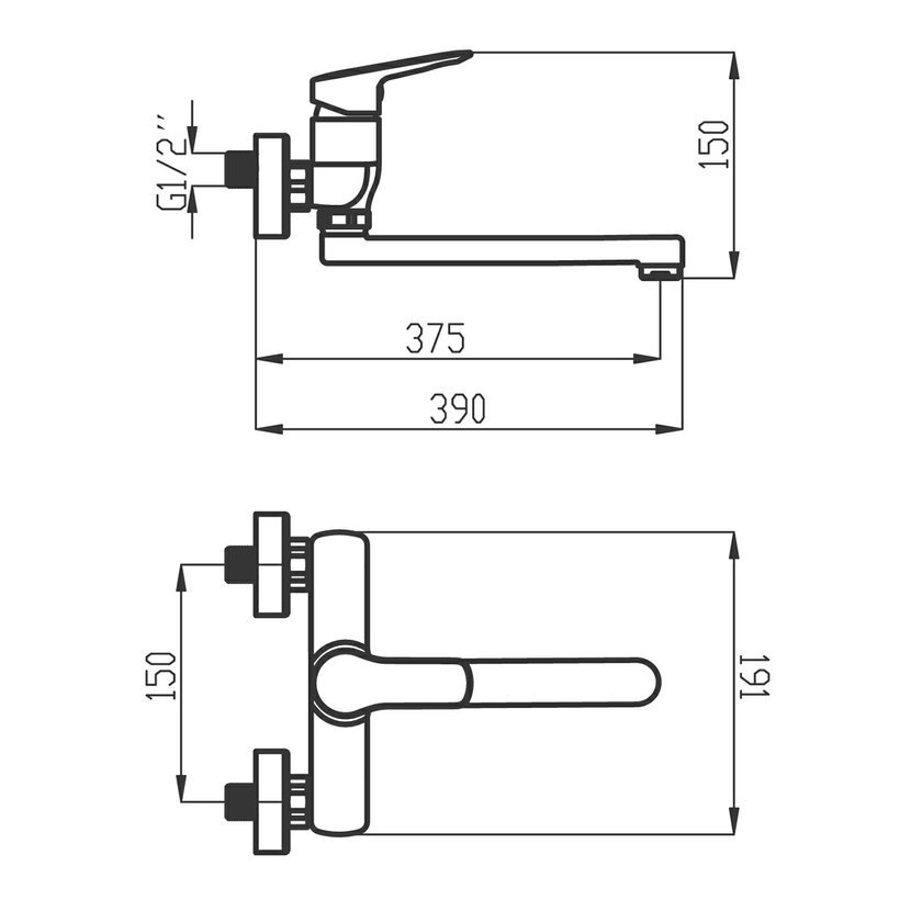 Kvalitní a odolná keramická kartuše KEROX 35 mm s prodlouženou zárukou 7 let. Prvotřídní chromové provedení. Nástěnná umyvadlová/dřezová baterie s roztečí 150 mm s plochým ramenem 350 mm.