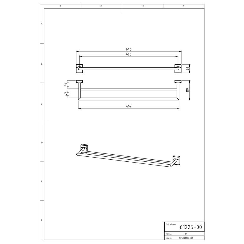 Parametry produktu NOVASERVIS Dvojitý držák ručníků 650 mm Metalia 12 chrom