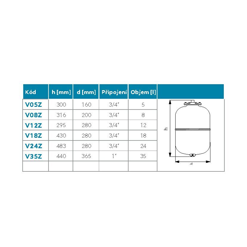 NOVASERVIS Expanzní nádoba do instalací tep. a stud. vody, závěsná, 35l V35Z