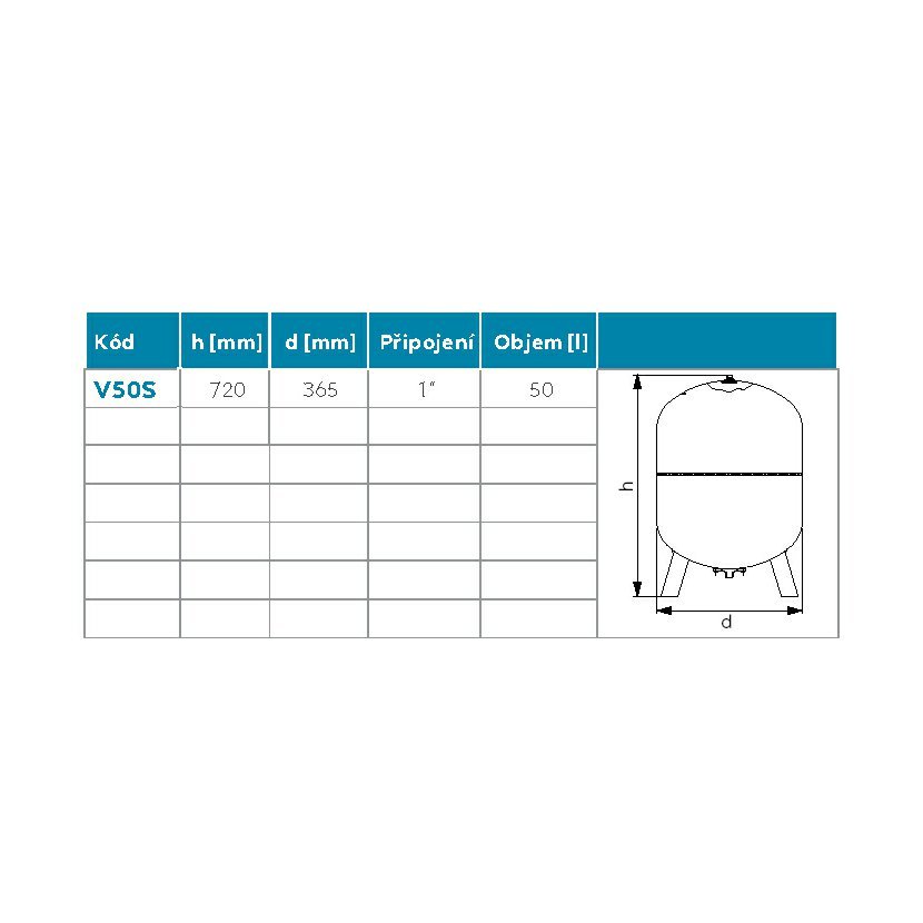 Expanzní nádoba do topných systémů, stojící, objem 50l