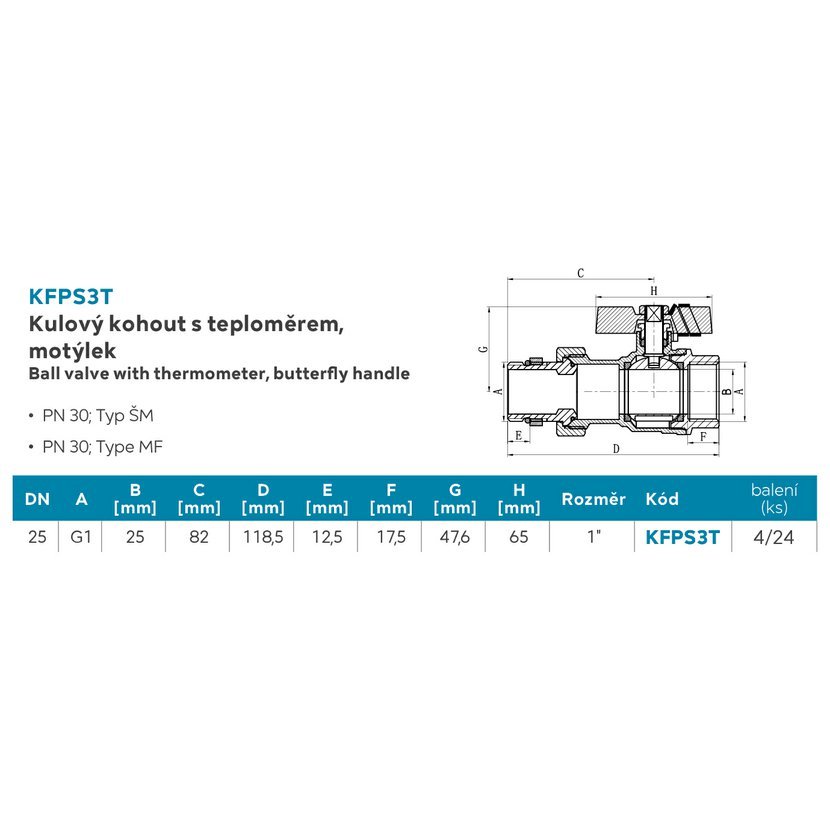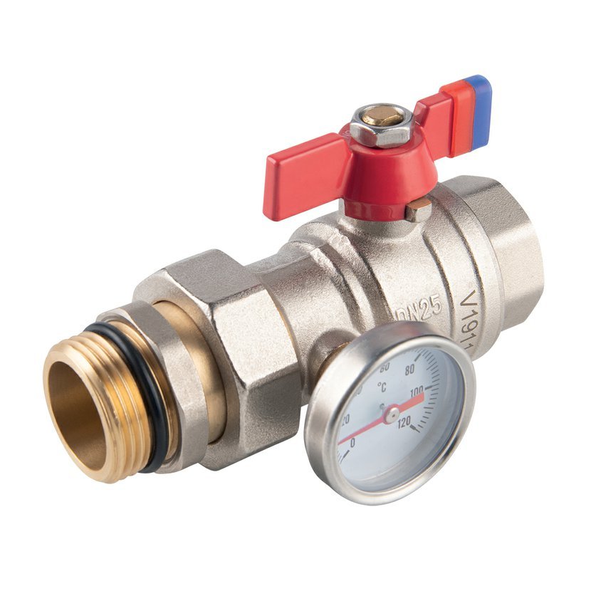 Kulový kohout s teploměrem, motýlek ŠM 1"