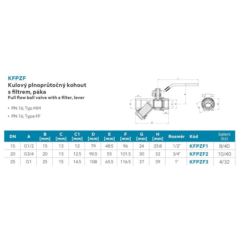 Kulový plnoprůtočný kohout s filtrem, páka MM 1"