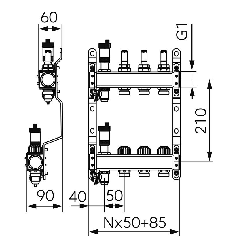 NOVASERVIS Nerezový rozdělovač F-PRO s automatickou regulací průtoku 10 okruhů
