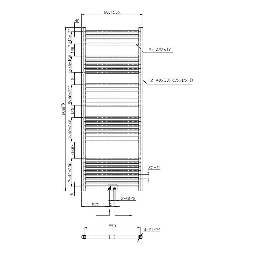 Otopné těleso černé - rovné, středové připojení