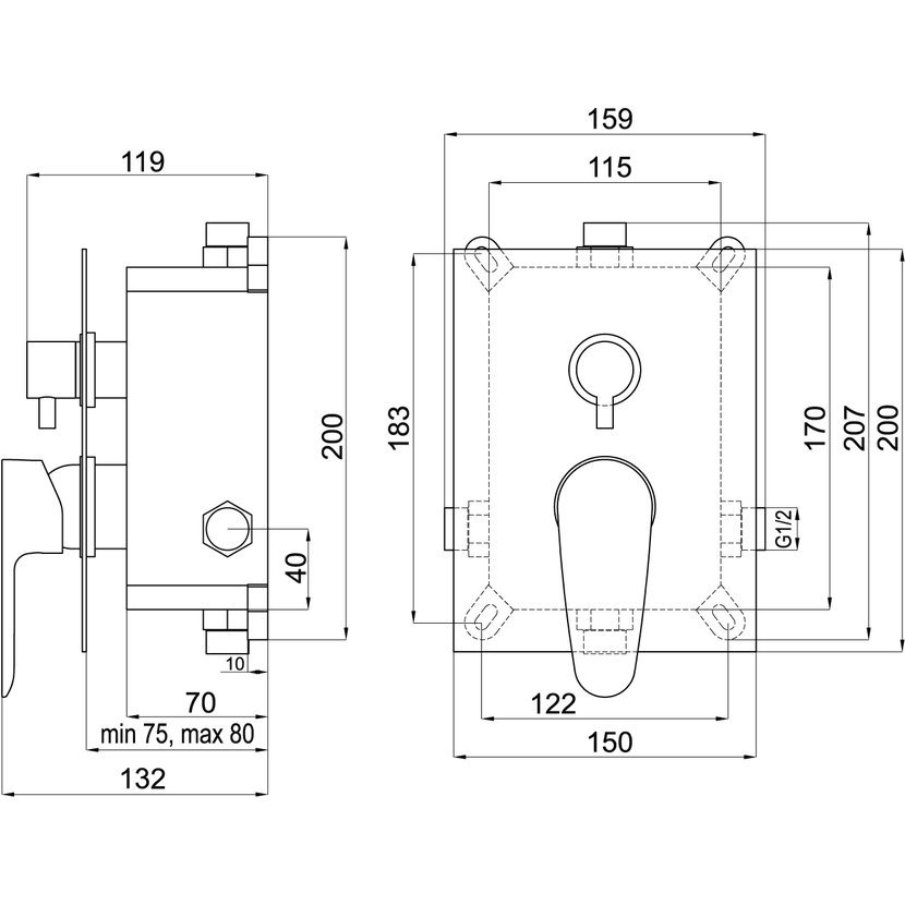Parametry produktu  NOVASERVIS Podomítková baterie s boxem 2 vývody, SMART