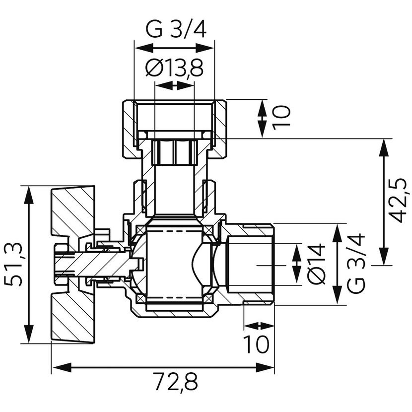 NOVASERVIS Rohový kulový kohout, ke kotlům 3/4"