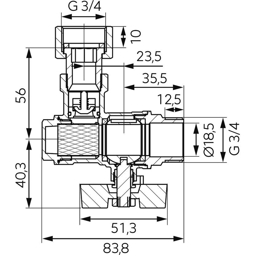 Rohový kulový kohout s filtrem a zpětnou klapkou, 3/4"