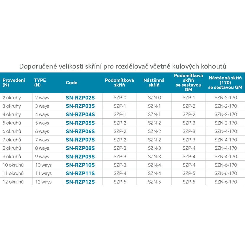 Parametry produktu NOVASERVIS Rozdělovač s regul.šroubením s průt.a uzav.ventily bez kul.-8 okruhů