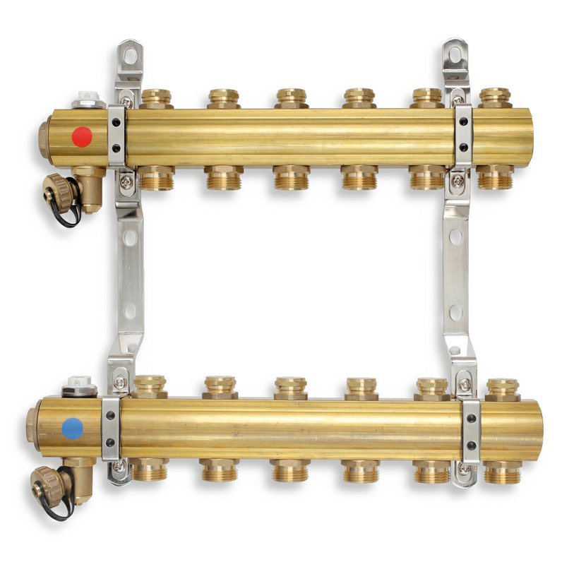 Rozdělovač s regulačními ventily pro přímé napojení otopných těles, připojení G1", výstup pro svěrné šroubení G3/4" s eurokonusem. Rozdělovač je možné doplnit čerpadlovou sestavou GM40GPA a kulovými kohouty KFPS3. Doplňky rozdělovače najdete v sekci Příslušenství k podlahovému topení.