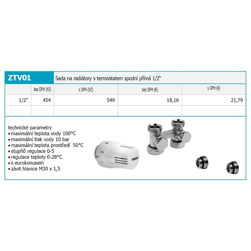 Sada na radiátory s termostatem spodní přímá 1/2" technické parametry: