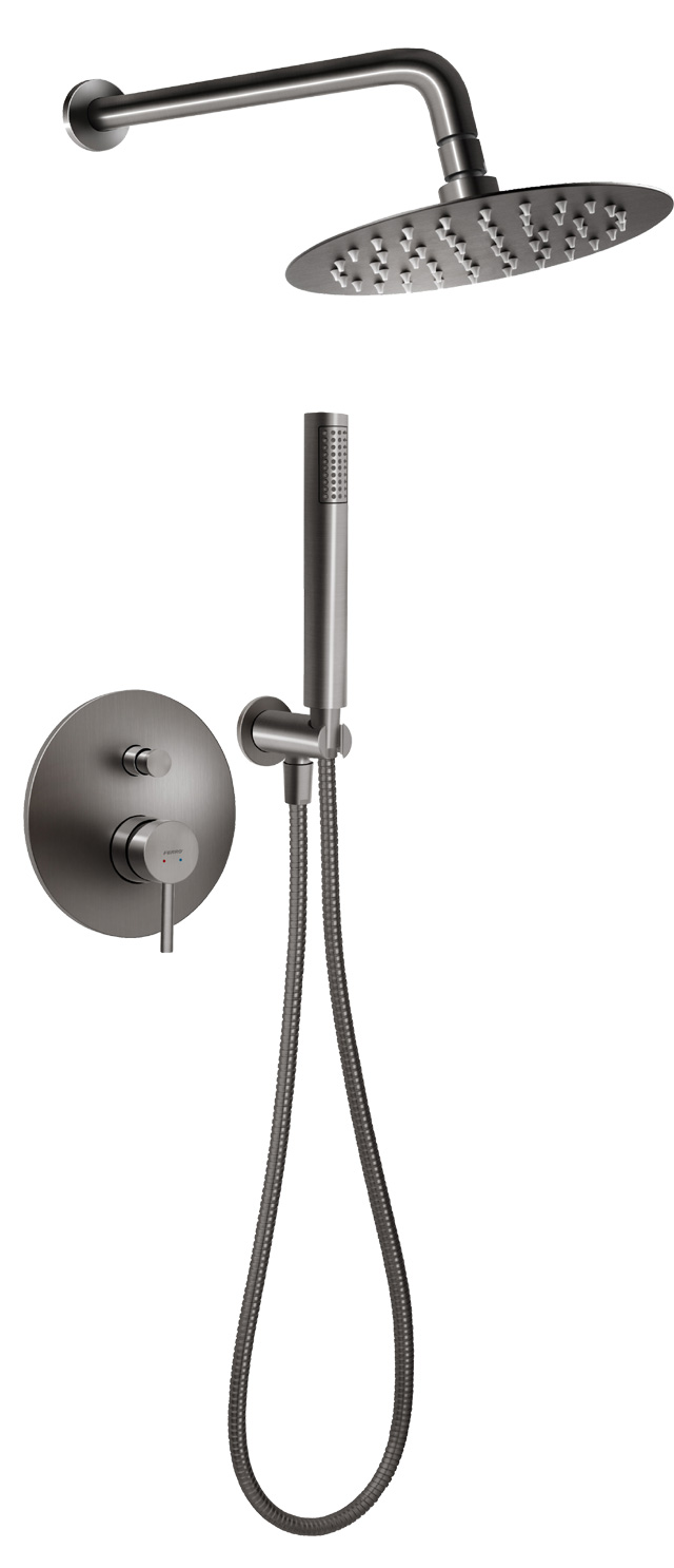 Sprchový podomítkový set Ferro Ciriculus Gun Metal spojuje moderní design, komfort a praktické funkce. Podomítkové provedení šetří prostor a zajišťuje čistý, elegantní vzhled bez rušivých prvků.