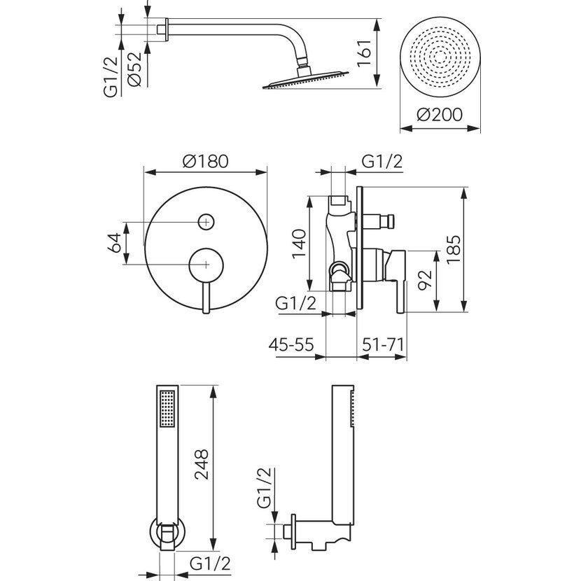 Parametry produktu NOVASERVIS Sprchová sada podomítková Ciriculus, gun metal