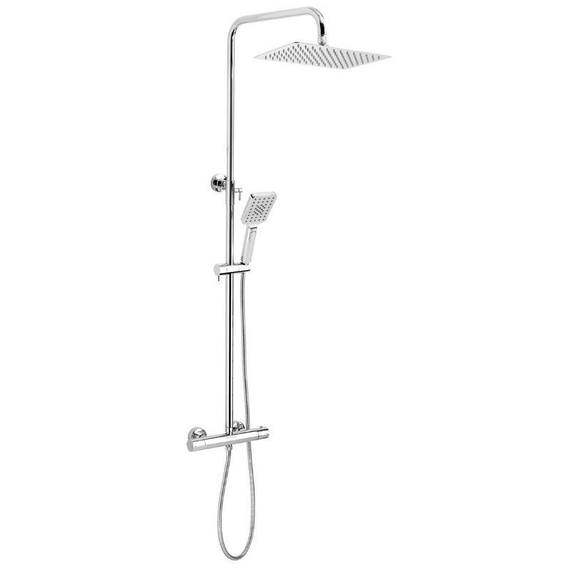 Prvotřídní chromové provedení. Set obsahuje termostatickou baterii s roztečí 150 mm. Součástí balení je hlavová sprcha ve SLIM DESIGN 300x200 mm, kovová hadice 150 cm a 3-polohová ruční sprcha s průtokem pouze 8 l/min.. Nastavitelná výška setu je 890 - 1300 mm.