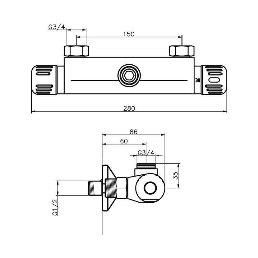 Parametry produktu  NOVASERVIS Sprchová termostat baterie horní vývod 150 mm Aquamat chrom