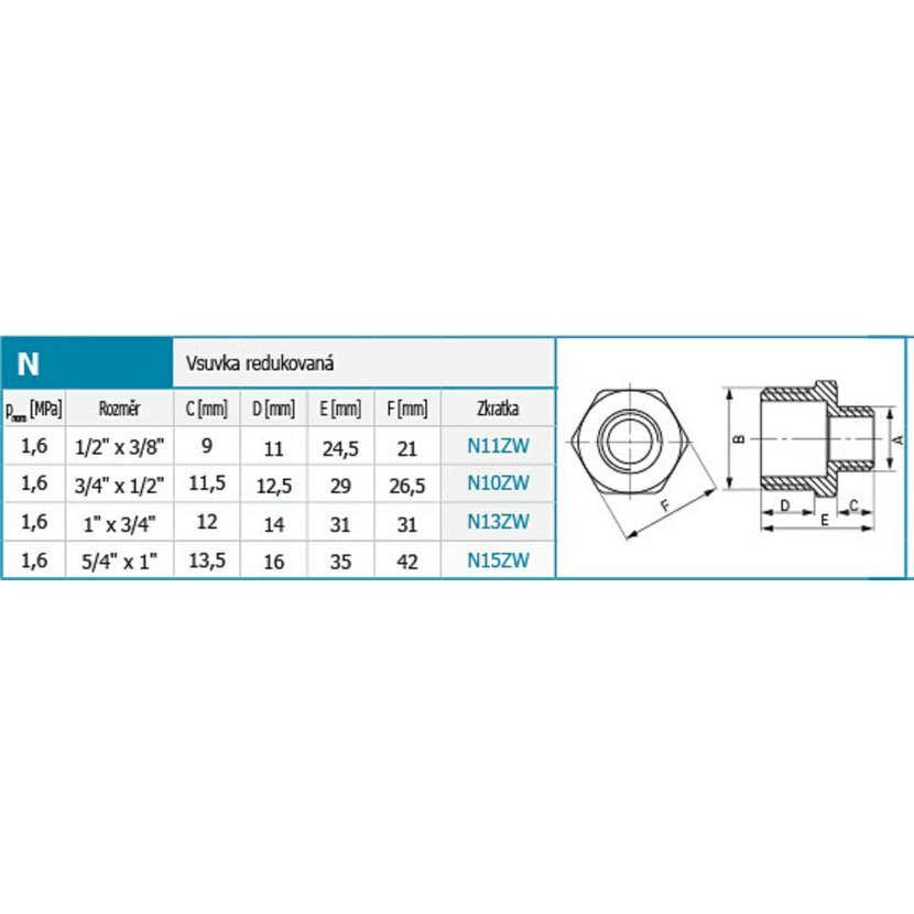 NOVASERVIS Standard vsuvka redukovaná mosazná 6/4"x 1"-N16Z