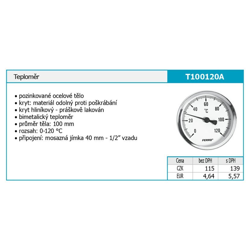 NOVASERVIS Teploměr 100mm 1/2"AXIALNÍ 0-120C