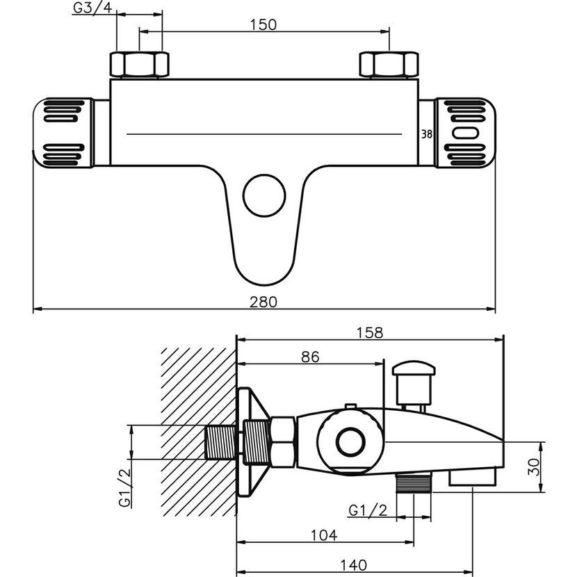 Parametry produktu NOVASERVIS Vanová baterie termostatická bez příslušenství 150 mm