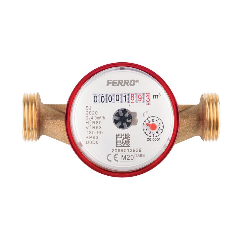 Antimagnetické vodoměr jednovtokový, suchoběžný do 90C. 3/4" připojení. • maximální pracovní tlak (MAP): 1,6 MPa (16 bar) • pracovní teplota: do 90 ° C • pro instalaci unitř budov • hermetické počítadlo