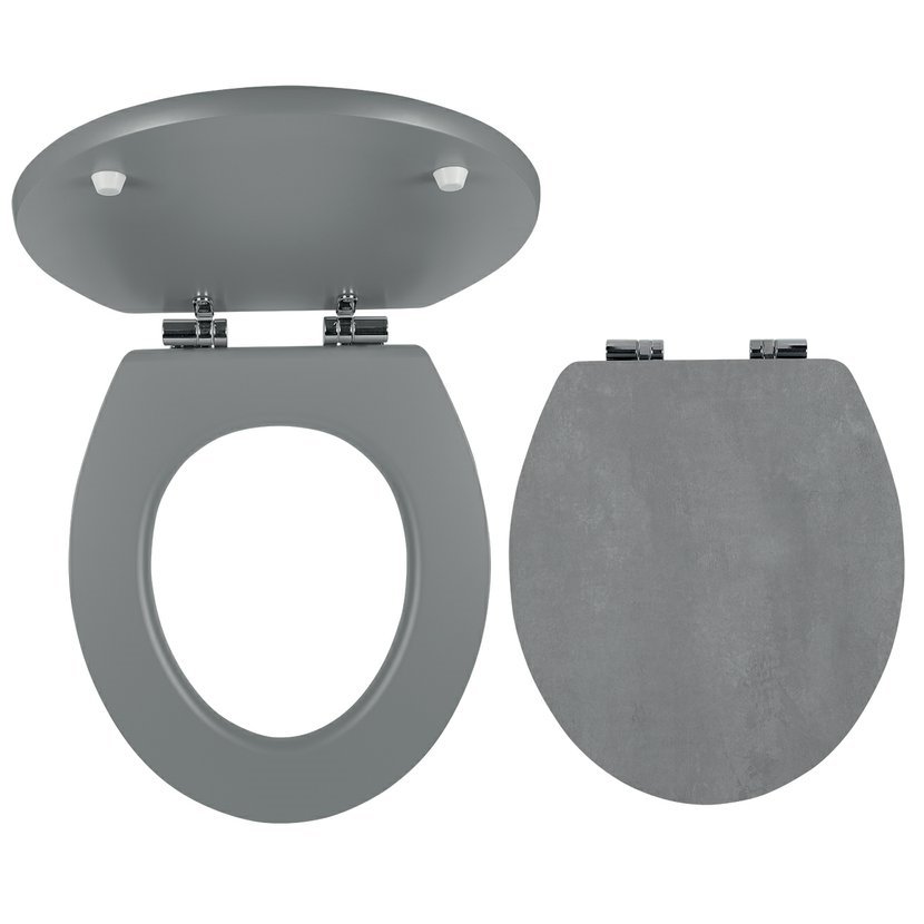 Pomalu padající WC sedátko s kovovým úchytem. Betonová barva. Provedení MDF s potiskem.