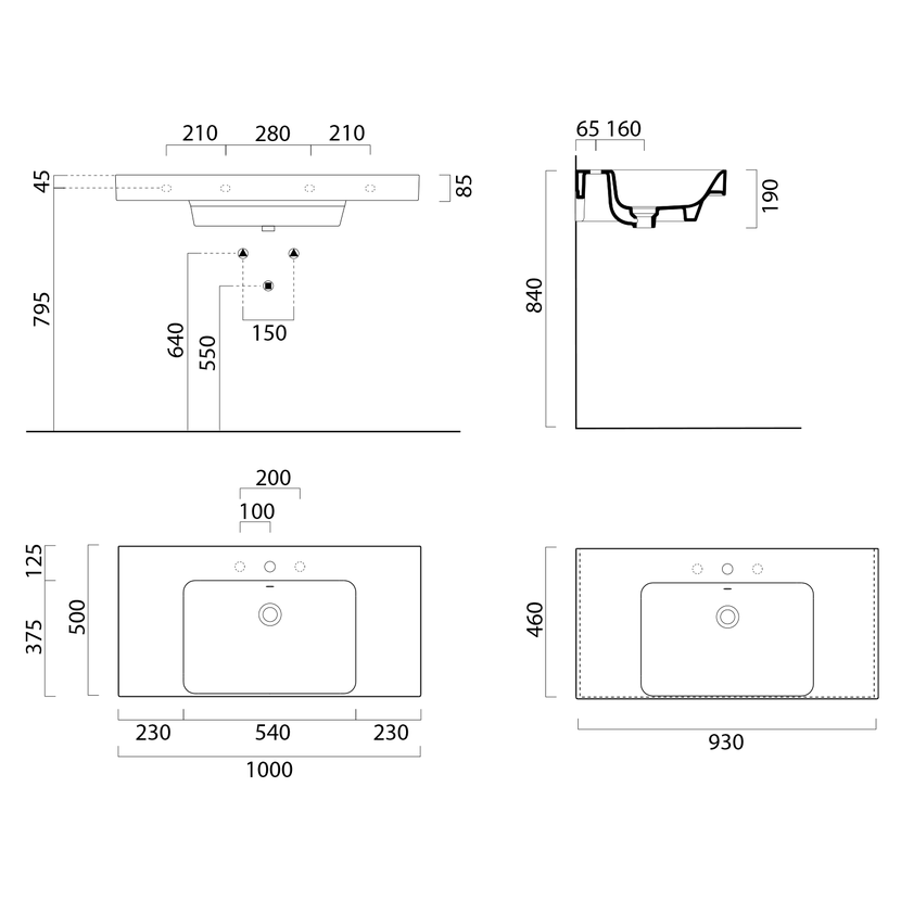 Parametry produktu NUBES keramické umyvadlo 100x50cm, s odkládacími plochami, bílá ExtraGlaze