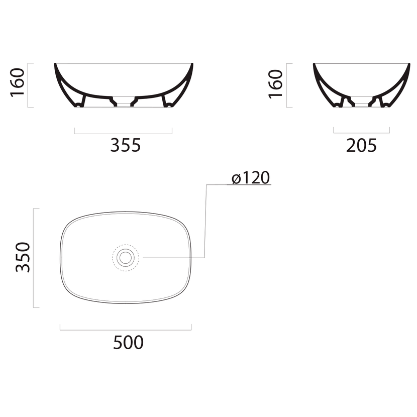 Parametry produktu NUBES keramické umyvadlo na desku 50x35cm, bílá ExtraGlaze