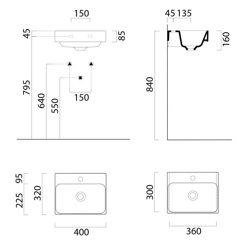Parametry produktu NUBES keramické umývátko 40x32cm, broušená spodní hrana, bez otvoru, tortora mat