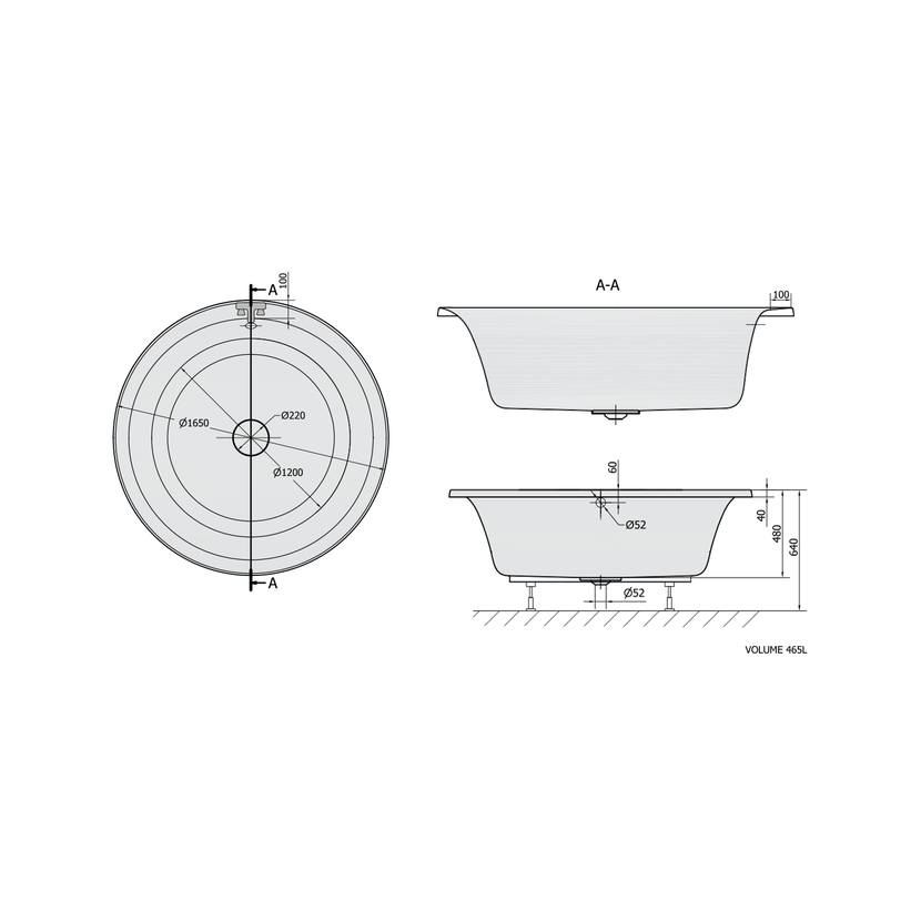 Parametry produktu  OBLO kulatá vana s konstrukcí 165x48cm, bílá