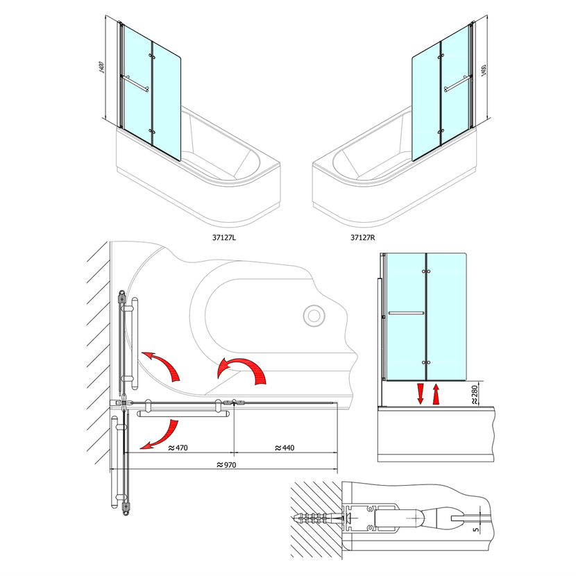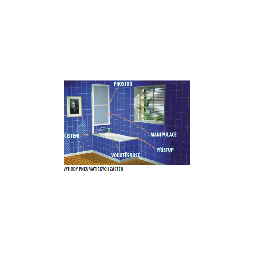 Parametry produktu  ODESSA vanová zástěna s pneumatickým zdvihem, š. 970mm, stříbrná, čiré sklo