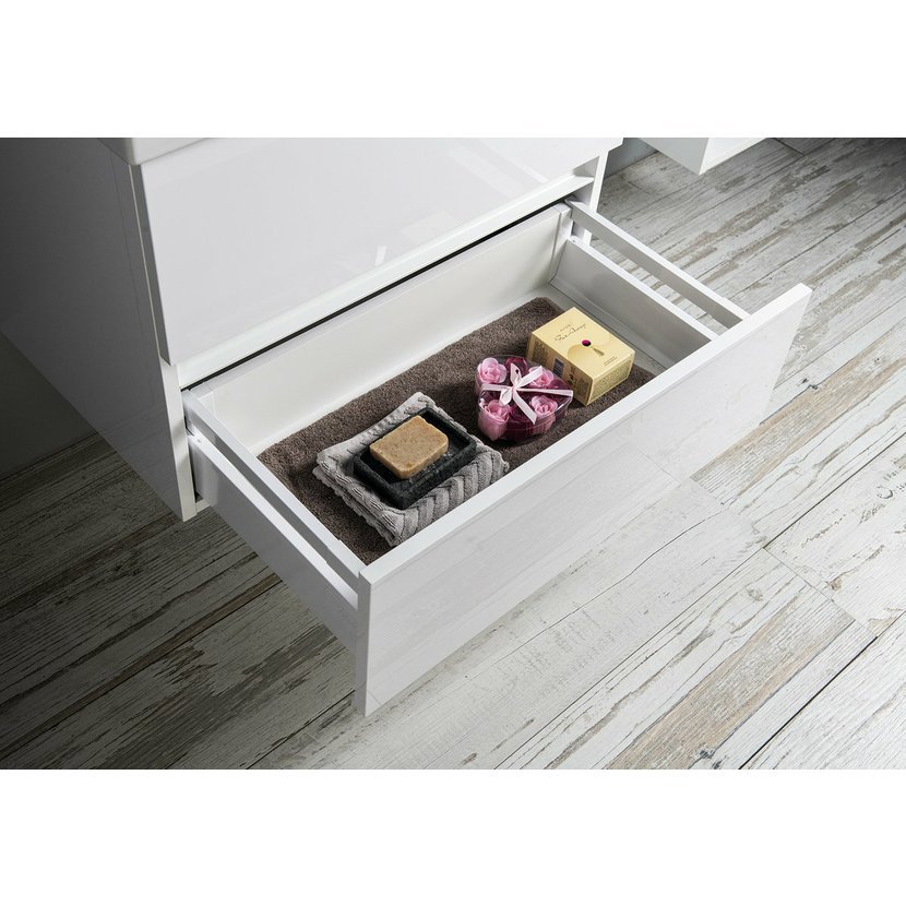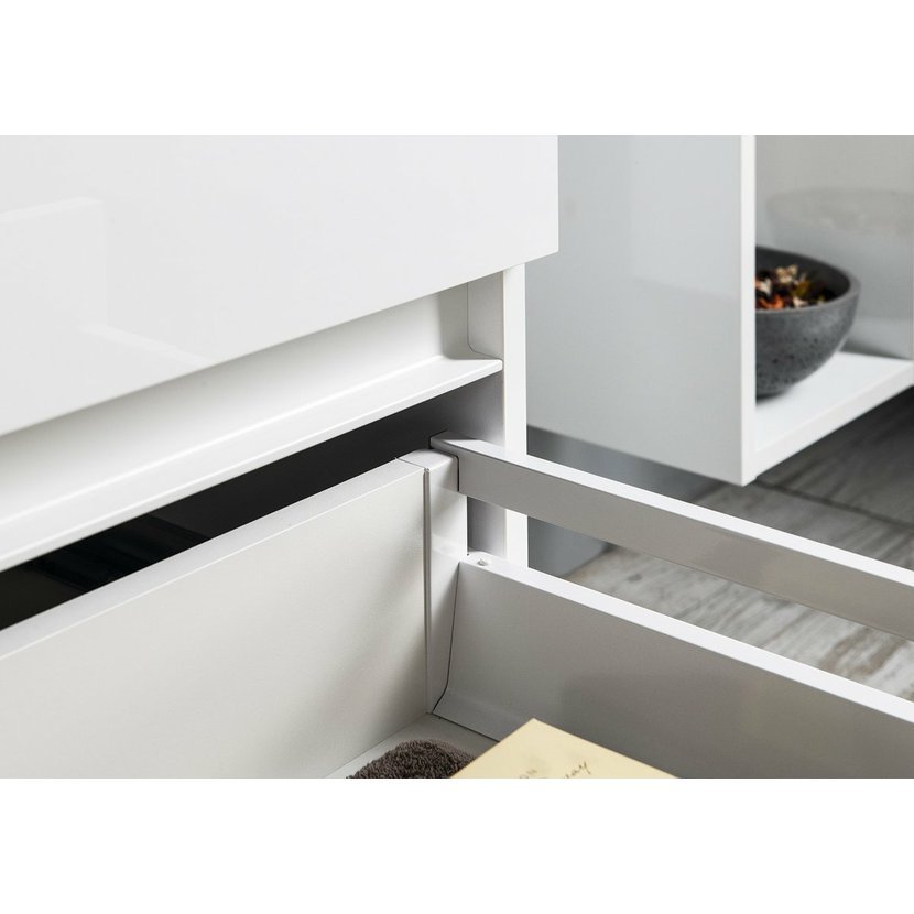 Nábytek je vybaven pojezdy zásuvek s pomalým dojezdem a systémem automatického dovření zásuvek. Již žádné hlučné dovírání.