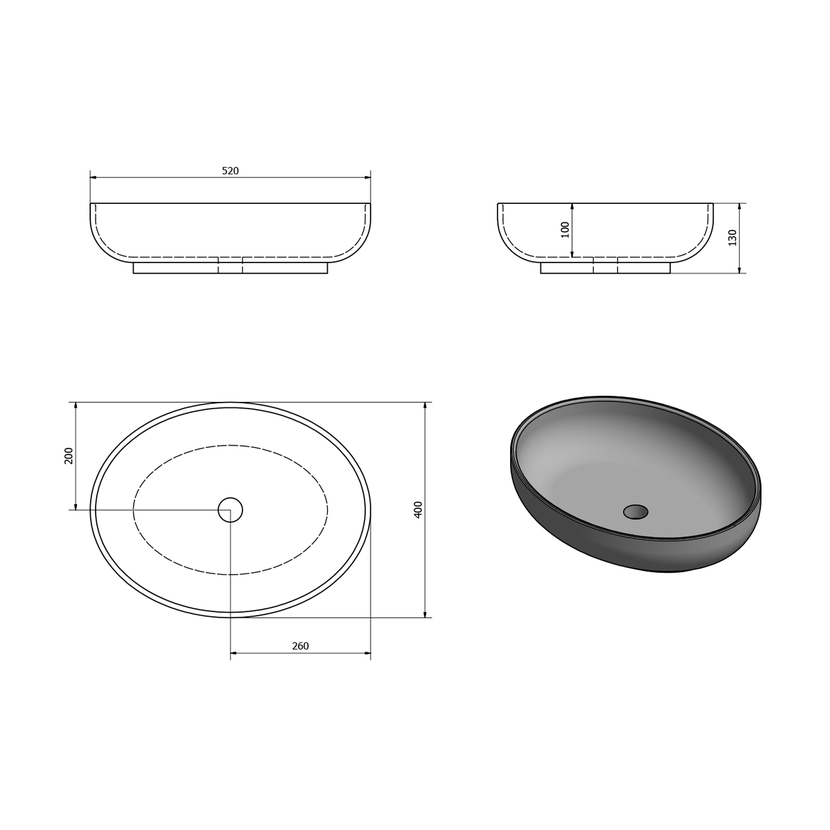 Parametry produktu  OFELIE keramické umyvadlo na desku, 52x40cm, bílá