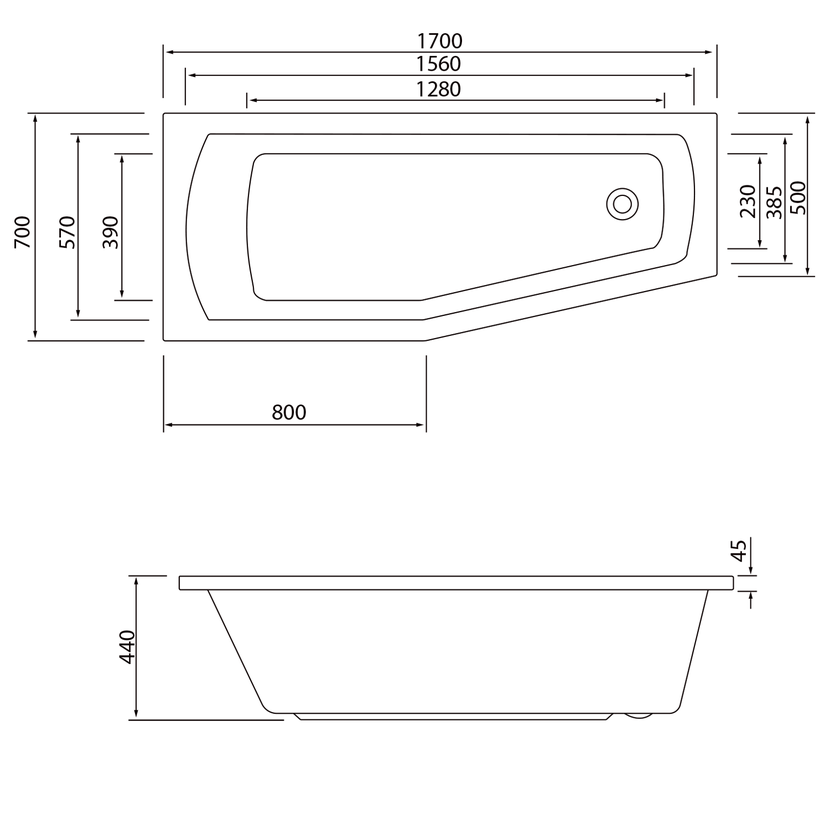 Parametry produktu  OPAVA vana 170x70x44cm, levá, bílá