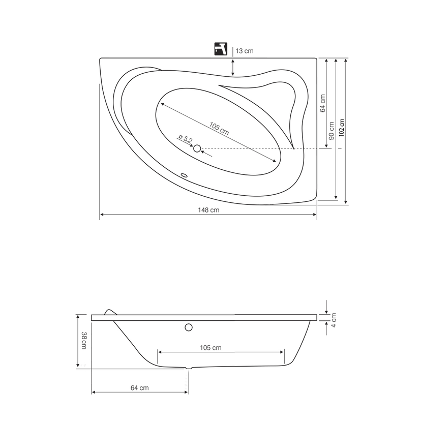 Parametry produktu ORAVA vana 150x90x38cm, pravá, bílá