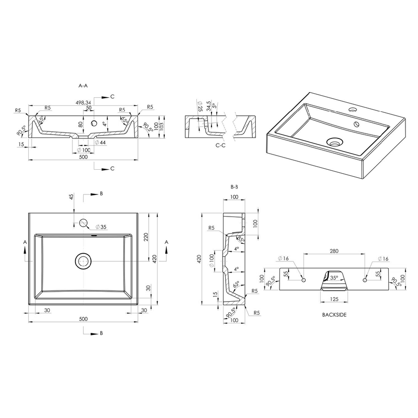 Parametry produktu  ORINOKO umyvadlo, litý mramor, 50x42cm, bílá