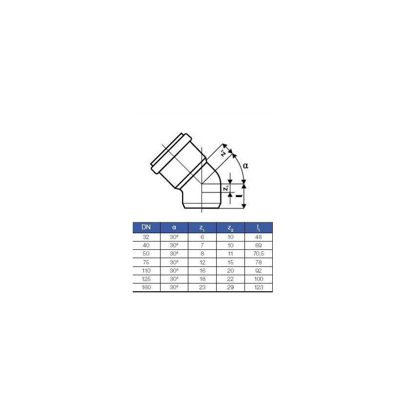 Parametry produktu  OSMA HTB koleno DN 40/30° 111110
