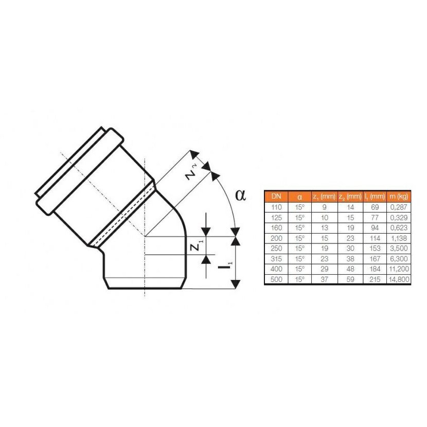 Parametry produktu  OSMA KGB koleno DN 110/15° 220200